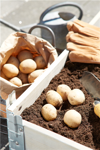 grün erleben PFLANZKARTOFFELN (Solanum) können ab Anfang Mai ins Hochbeet gesetzt werden. Sie haben einen regelmäßigen Wasserbedarf und können je nach Sorte ab Juli bis September auf den Tisch.