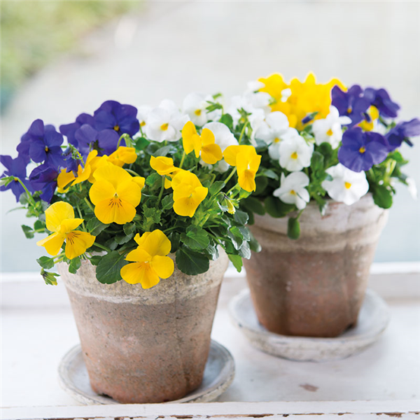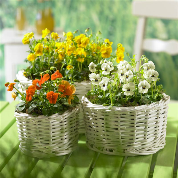 Lassen Sie sich von der breiten Auswahl an Stiefmütterchen und Hornveilchen in allen möglichen Farben und Formen inspirieren, die in den Gartencentern derzeit in großer Fülle angeboten werden, und verbreiten Sie zu Hause ganz nach Lust und Laune Frühjahrsstimmung. Sie können sich z. B. für ein Farbthema entscheiden und die Kübel nur mit blauen Blumen bepflanzen, Sie können eine mehrfarbige Sorte wählen oder ein ganzes Potpourri aus fröhlichen Frühlingsfarben zusammenstellen – nur Ihre Fantasie setzt die Grenzen.