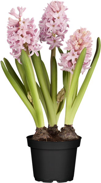 Die glänzend grünen Laubblätter sind schmal und streifenartig und erscheinen zusammen mit den Blüten. Die zahlreichen Blüten stehen in traubigen Blütenständen zusammen und verströmen einen süßlichen Duft. Je nach Sorte sind die Blüten blau, rosa, lila oder weiß gefärbt. Hyazinthen bevorzugen einen Platz im Garten oder einen kühleren Platz in der Wohnung.