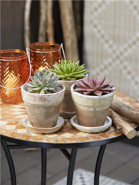 Die unkomplizierten Echeverien (Echeveria) werden auch Fettpflanzen genannt und imponieren durch ihre natürliche Vielfalt. Diese pflegeleichte Sukkulente mag einen sonnigen oder halbschattigen Standort und kann im Sommer auch gerne nach draußen ziehen. Sie benötigt nur sehr wenig Wasser und passt mit ihrem Aussehen perfekt zu jedem Wohntrend.
