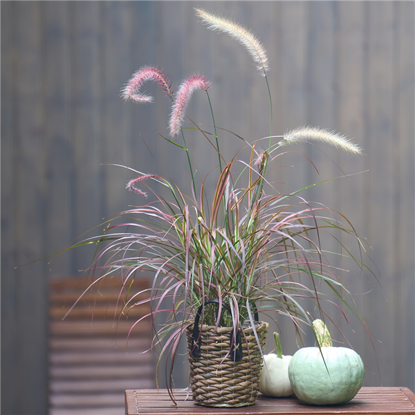 Das rote Federborstengras (Pennisetum setaceum 'Rubrum') zeigt schmale, rot bis purpur gefärbte Halme und zarte, fedrige Blütenähren, die sich sanft im Wind bewegen und jeder Pflanzung eine dynamische Note verleihen. Das auffällige Ziergras bringt Bewegung und warme Farbtöne in den Garten oder auf die Terrasse und setzt lebendige Akzente, die perfekt zum Trend "RUSTY FLAIR" passen. Das Federborstengras liebt einen sonnigen Standort und